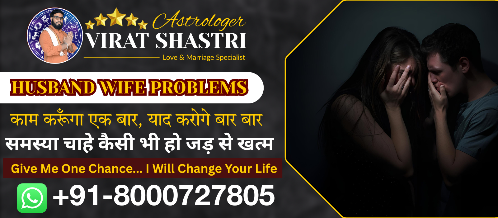 I contacted famous no.1 Astrologer Virat Shastri to get help with my divorce issue. I am fortunate that his solutions actually enabled me to stop the divorce and currently maintain a better relationship between me and my wife.
